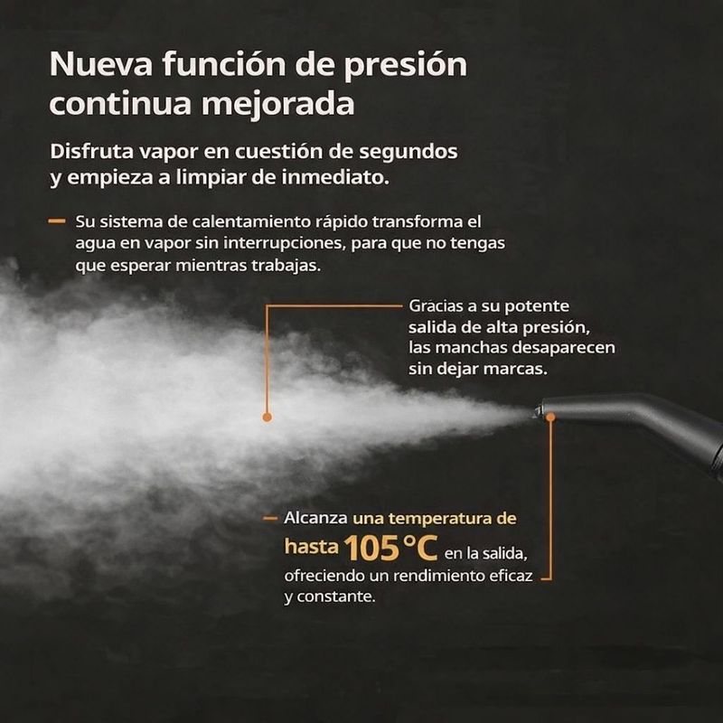 Haz que la limpieza deje de ser una tarea pesada y se vuelva algo rápido, práctico y hasta satisfactorio ??? Este vaporizador portátil está diseñado pa’ que no te enredes: en segundos transforma el agua en vapor continuo de alta presión, alcanzando hasta 105°C, eliminando grasa, manchas y suciedad sin necesidad de químicos agresivos.