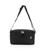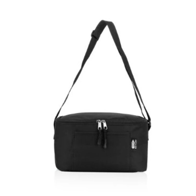 Lonchera con recubrimiento interno, diseño sofisticado, cierre de cremallera con doble deslizador y bolsillo pequeño en la parte frontal. Manija con hebilla para regular el largo del agarre.