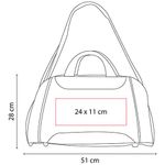 Descripción: "Bolsa principal, zapatera posterior con cierre, bolsa lateral de red, asas y correa ajustable."