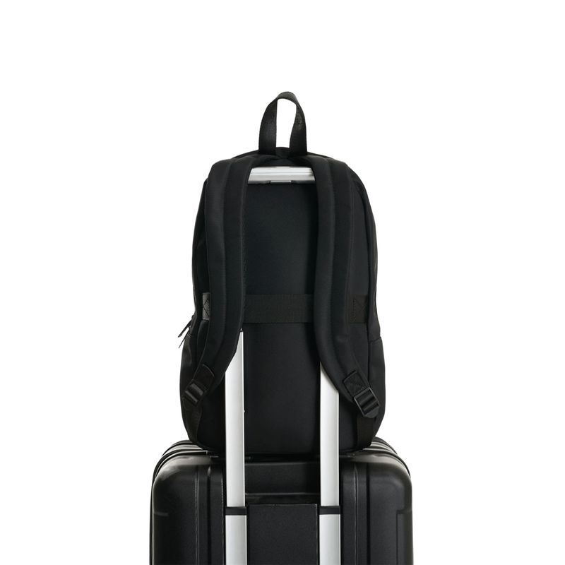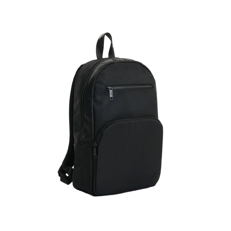 Diseño limpio y sofisticado en una pieza versátil para la rutina y los viajes. Este morral, elaborado en lona de poliéster con detalles en acabado metálico, equilibra funcionalidad y estética atemporal. Sus compartimentos organizan lo esencial con practicidad, mientras las cargaderas acolchadas y la manija superior aportan confort. Perfecto para combinar con looks formales relajados o estilismos casuales y urbanos.