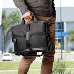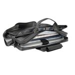 Portafolio ejecutivo con múltiples bolsillos organizadores, ideal para llevar todo lo necesario en un solo accesorio. Su bolsillo principal con cierre, permite guardar una laptop de hasta 15''. Bolsillo frontal, con cierre de velcro y broche de plástico, ideal para mantener seguras tus pertenencias de valor, además de dos bolsillos para objetos mas pequeños. Asa superior que se une por medio de velcro y un asa removible para hombro con broches metálicos. En la parte posterior, contiene una banda para transportar facilmente en trolley.