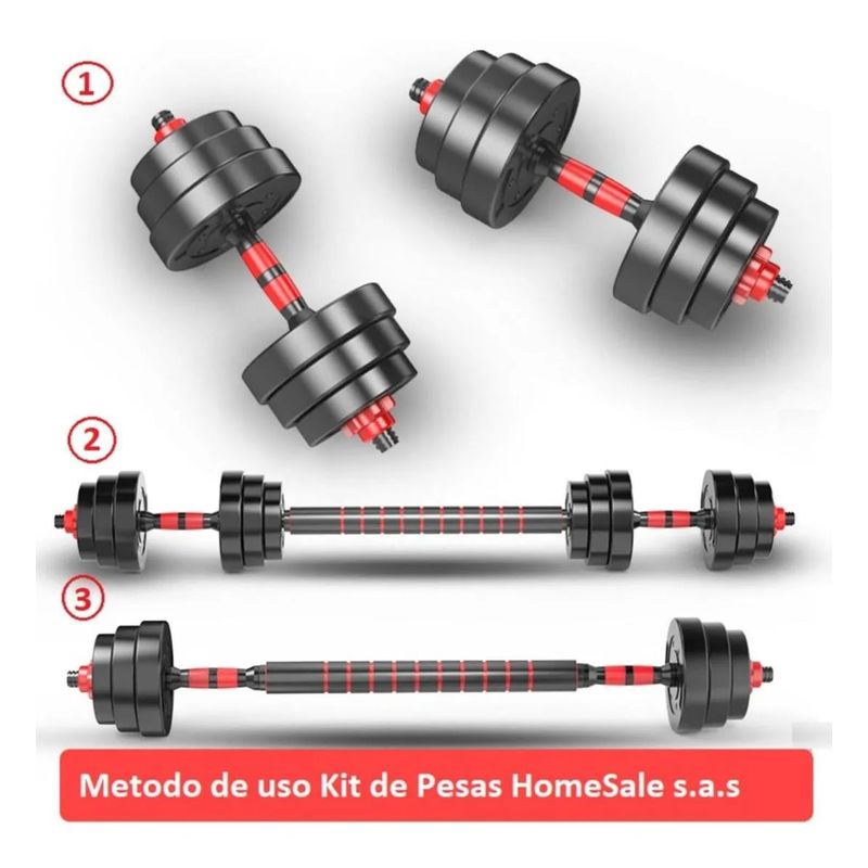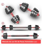 • Versatilidad en el Entrenamiento: Transformación de las mancuernas en una barra larga para ejercitar múltiples grupos musculares.