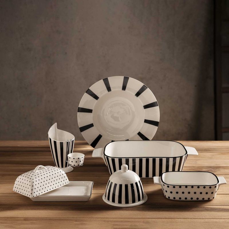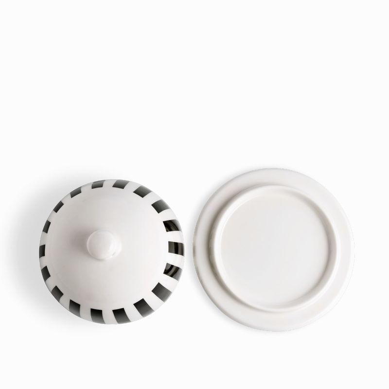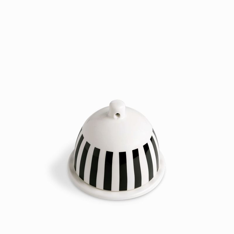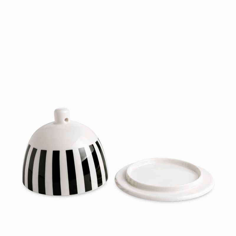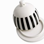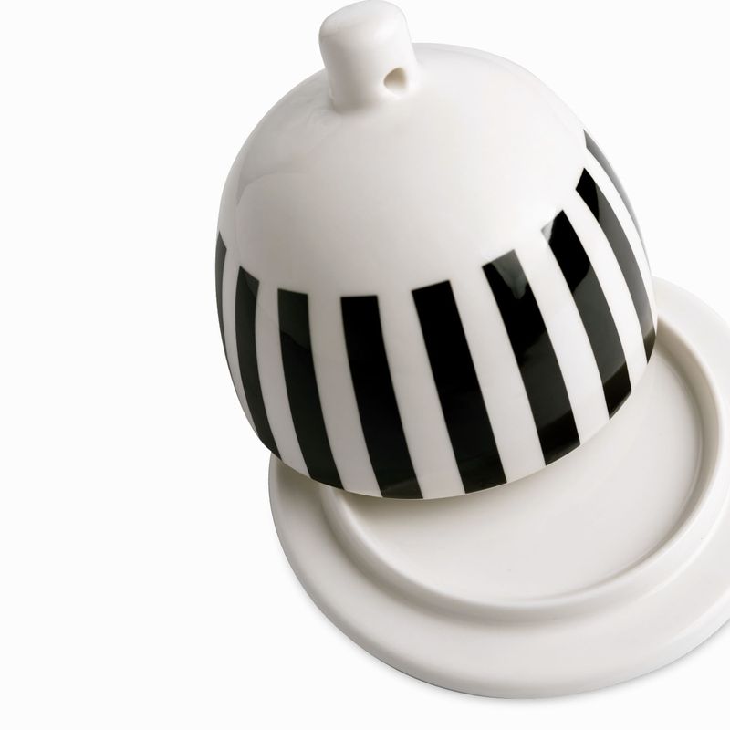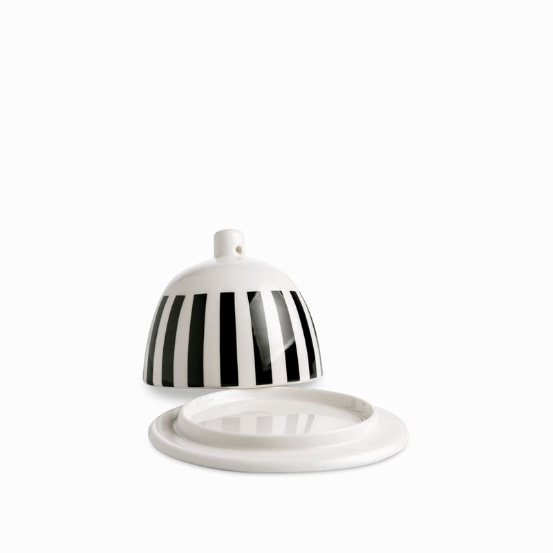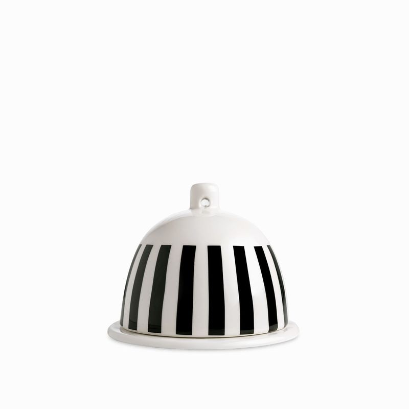Mantequillera en porcelana de la colección contraste, plato con domo tiene un acabado esmaltado con diseño moderno y llamativo.