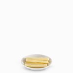 Miniplato en porcelana para servir en la mesa porciones individuales de mantequilla, margarina, queso fundido, paté u otro alimento de consistencia cremosa.