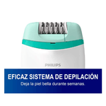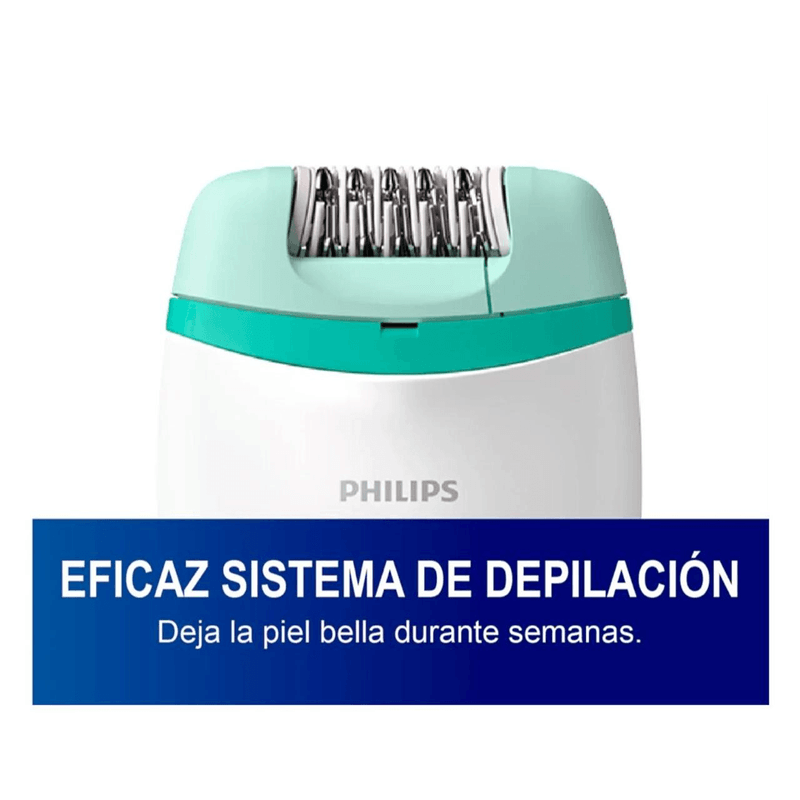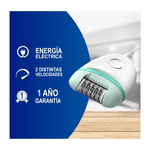 Eficaz sistema de depilación que elimina el vello de raíz: Eficaz sistema de depilación que deja la piel suave y sin vello durante semanas. 2 posiciones de velocidad para agarrar los vellos más gruesos y delgados: 2 posiciones de velocidad para eliminar el vello más fino y el más grueso y disfrutar de un tratamiento de depilación más personalizado. Mango ergonómico perfilado para un manejo cómodo: Su forma redondeada se adapta perfectamente a tu mano para facilitarte el uso. Además tiene un diseño espectacular. Depiladora con cabezal lavable para más higiene y fácil limpieza: Esta depiladora posee un cabezal de depilación lavable. Puedes extraer el cabezal para limpiarlo con agua y disfrutar de la máxima higiene.