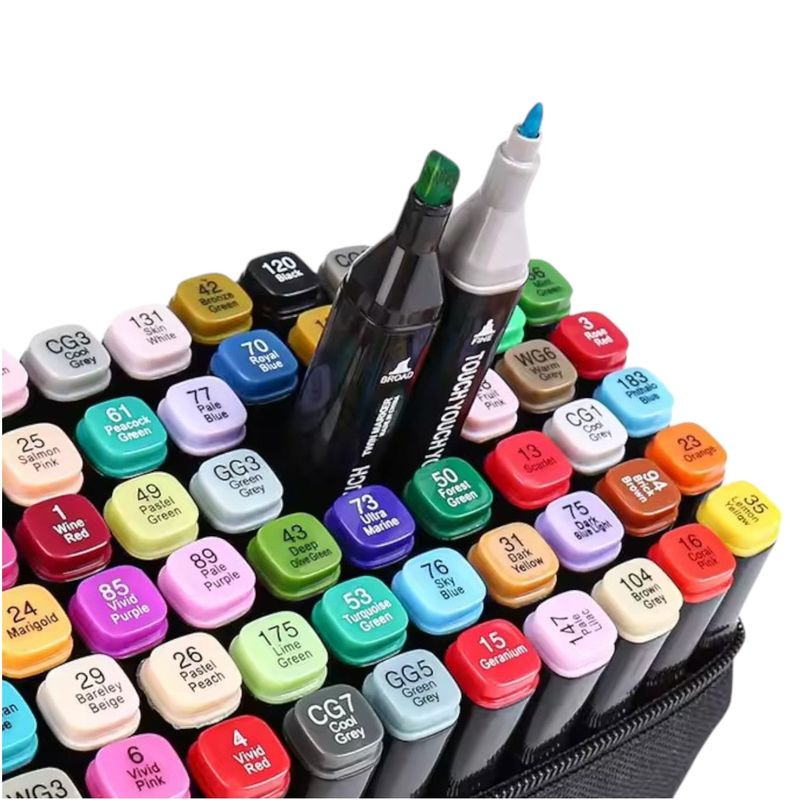 Explora tu creatividad con este completo set de 80 marcadores de doble punta, ideal para ilustradores, diseñadores, estudiantes y amantes del arte. Cada marcador ofrece colores intensos y vibrantes que permiten realizar trazos precisos, mezclas suaves y degradados profesionales. Perfectos para dibujos, bocetos, lettering y más, vienen organizados en un práctico estuche portátil con cierre, ideal para mantenerlos protegidos y llevarlos a cualquier parte.