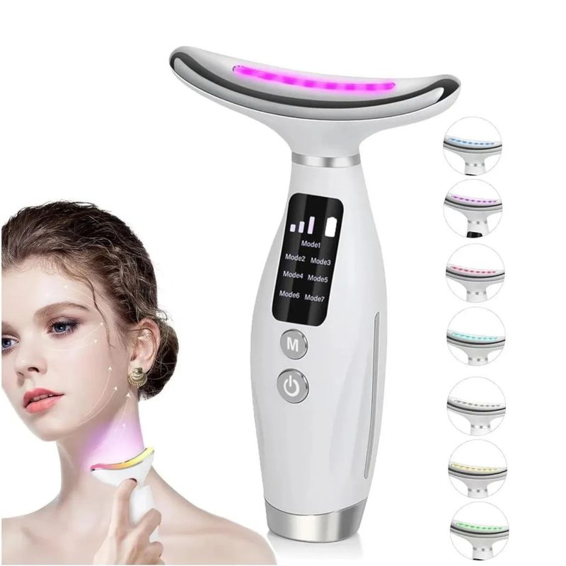 - Masajeador facial y de cuello con tecnología de luz LED multicolor