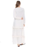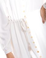 Vestido largo y elegante con manga larga, confeccionado en tela fluida para un movimiento natural. Presenta botonadura frontal que aporta un toque clásico y femenino, y delicados boleros que añaden volumen y romanticismo. Ideal para ocasiones especiales o looks de temporada con un aire sofisticado y bohemio. color blue nace en 1984, fue creada para ser una marca honesta y familiar, la cual se enfocaba principalmente en la producción y exportación de ropa. hoy somos un equipo que trabaja con pasión y hemos cambiado completamente nuestra filosofía. nuestra marca está hecha para ambos géneros con un estilo muy nuestro. somos una empresa colombiana con experiencia en el mercado a través de la comercialización de prendas de vestir.
