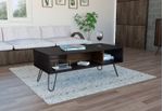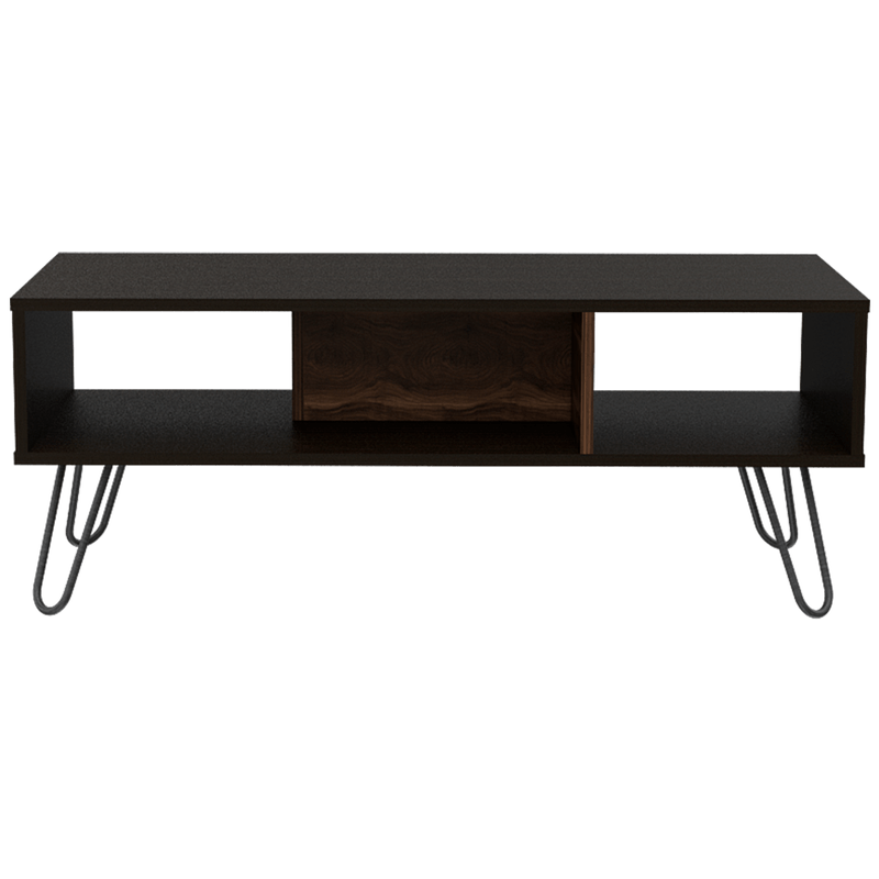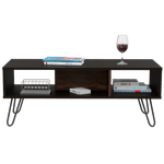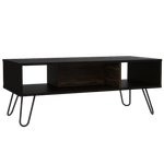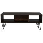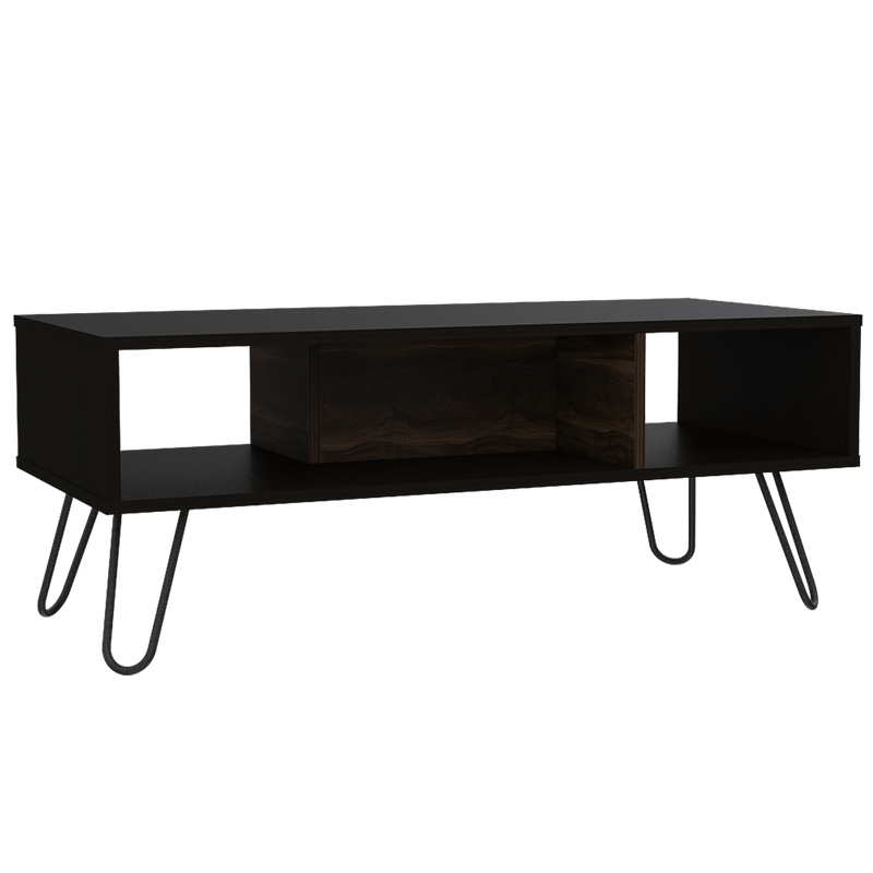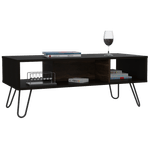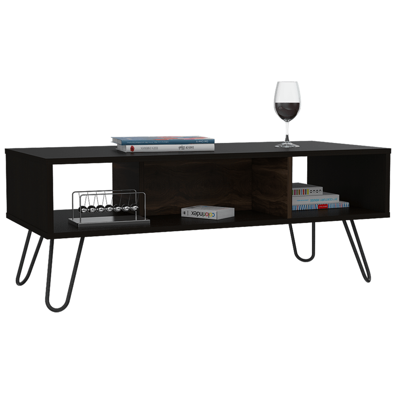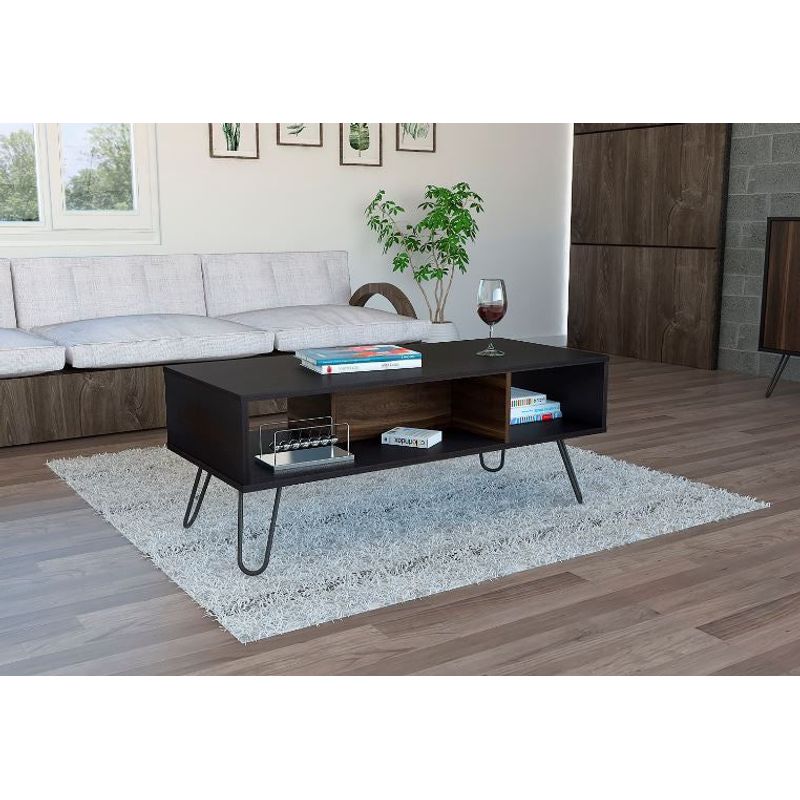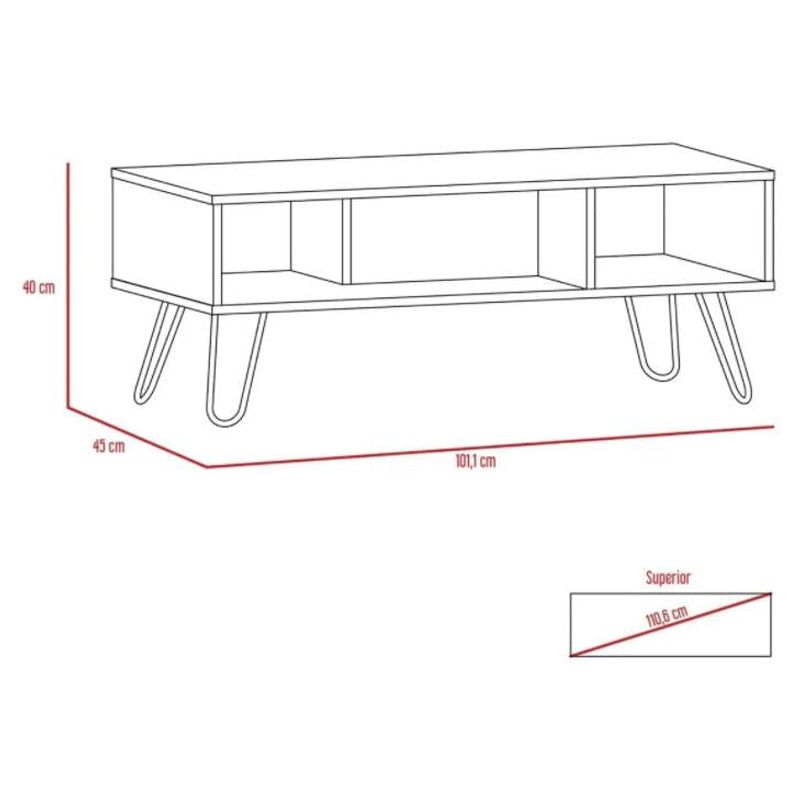 Mesa de Centro, con amplio espacio para elementos decorativos, diseño moderno y patas en acero.