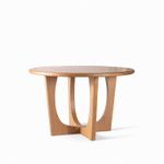 La mesa Vila redonda es más que un mueble; es una invitación a la igualdad y la convivencia. Su forma circular elimina las esquinas, haciendo que cada asiento se sienta principal y fomentando una comunicación natural y fluida entre los comensales. El acabado en tono natural, realzado por la chapa de roble, llena tu comedor de una luminosidad serena.