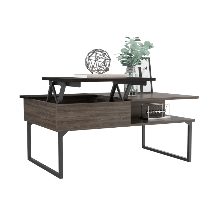 Mesa de centro, extensible, espacios inferiores para colcoar objetos, decorativos, libros u otros, patas metalicas con medidas de: ALTO 45,7 ANCHO 105,1 FONDO 66