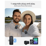 Su diseño compacto y liviano permite usarlo cómodamente en exteriores, estudios o grabaciones en movimiento. Gracias a su sistema inalámbrico, elimina cables incómodos y brinda mayor libertad al grabar.