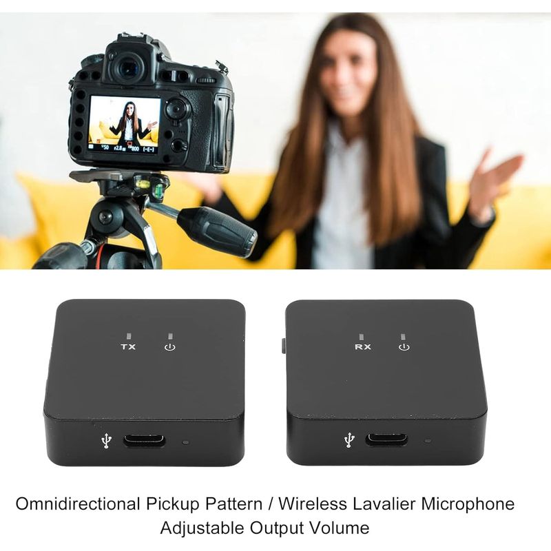 El transmisor se puede conectar con música de acompañamiento o instrumento musical; también tiene una interfaz de micrófono externa; con parabrisas peludo; volumen ajustable. El receptor se puede conectar con el teléfono o la cámara.