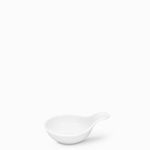 Mini tazón profundo con asa en porcelana blanca de 25 ml, especial para ofrecer pequeños bocados dulces o salados en celebraciones especiales, también puede usarse para llevar a la mesa condimentos, mantequilla, mermeladas o dips.