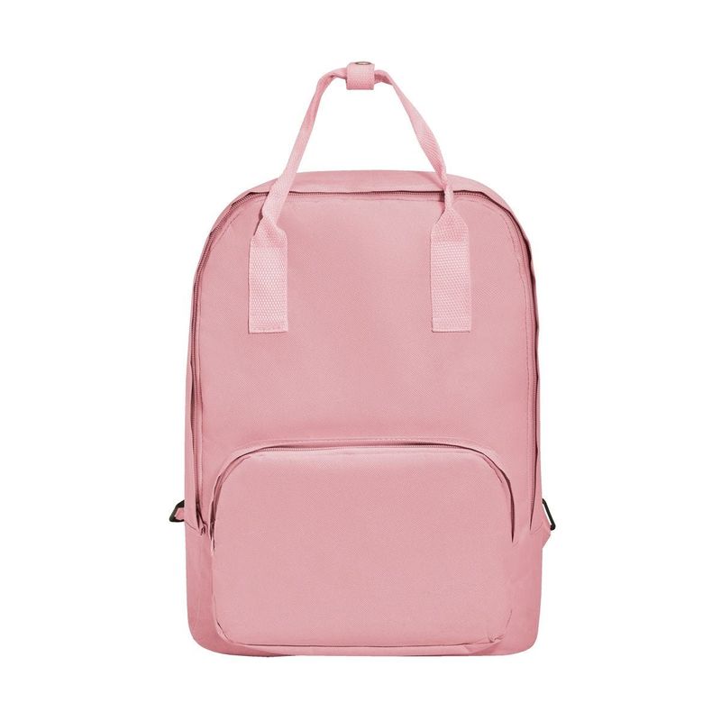 Descripción: "Bolsa principal, bolsa frontal con cierre. Incluye asas de mano con botón metálico."