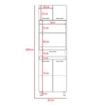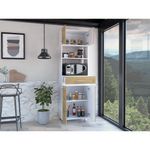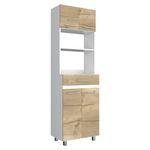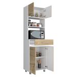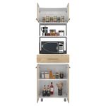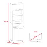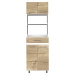 Módulo Microondas, con espacio para horno microondas, 4 puertas abatibles, compartimientos superiores e inferiores para guardar alimentos, utensilios de cocina y/u otros, manijas metálicas, 1 cajón central multi-uso correderas deslizables.