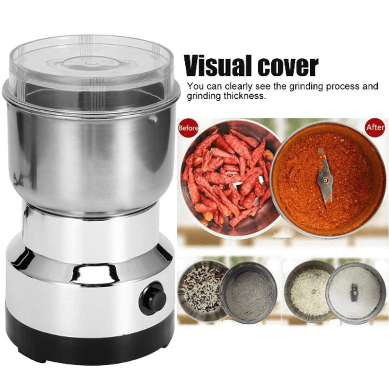 Diseñado para ofrecer eficiencia sin ocupar mucho espacio, este molinillo eléctrico te permite obtener ingredientes finamente molidos para tus recetas favoritas. Su motor de alto rendimiento asegura una molienda rápida, ideal para café recién molido, semillas, especias, cereales y más.