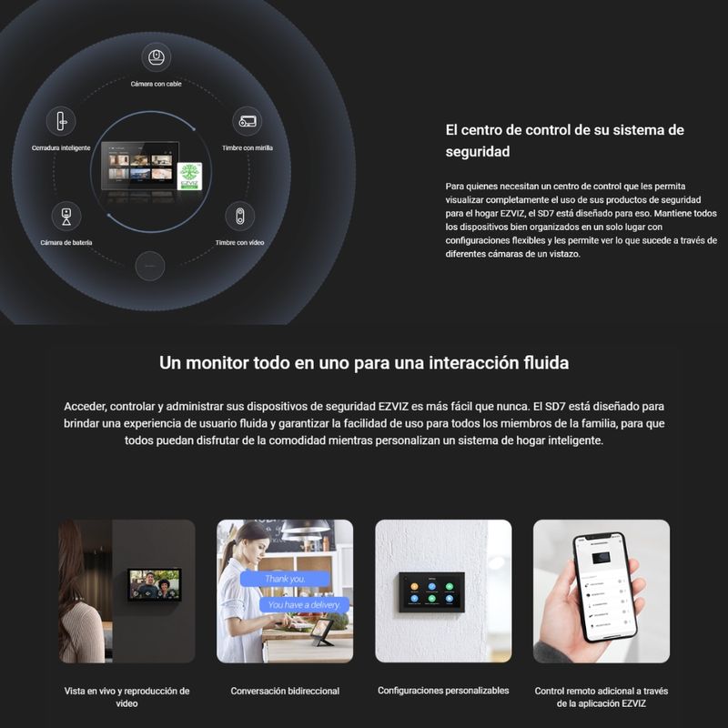 Para quienes necesitan un centro de control que les permita visualizar completamente el uso de sus productos de seguridad para el hogar EZVIZ, el SD7 está diseñado para eso. Mantiene todos los dispositivos bien organizados en un solo lugar con configuraciones flexibles y les permite ver lo que sucede a través de diferentes cámaras de un vistazo.
