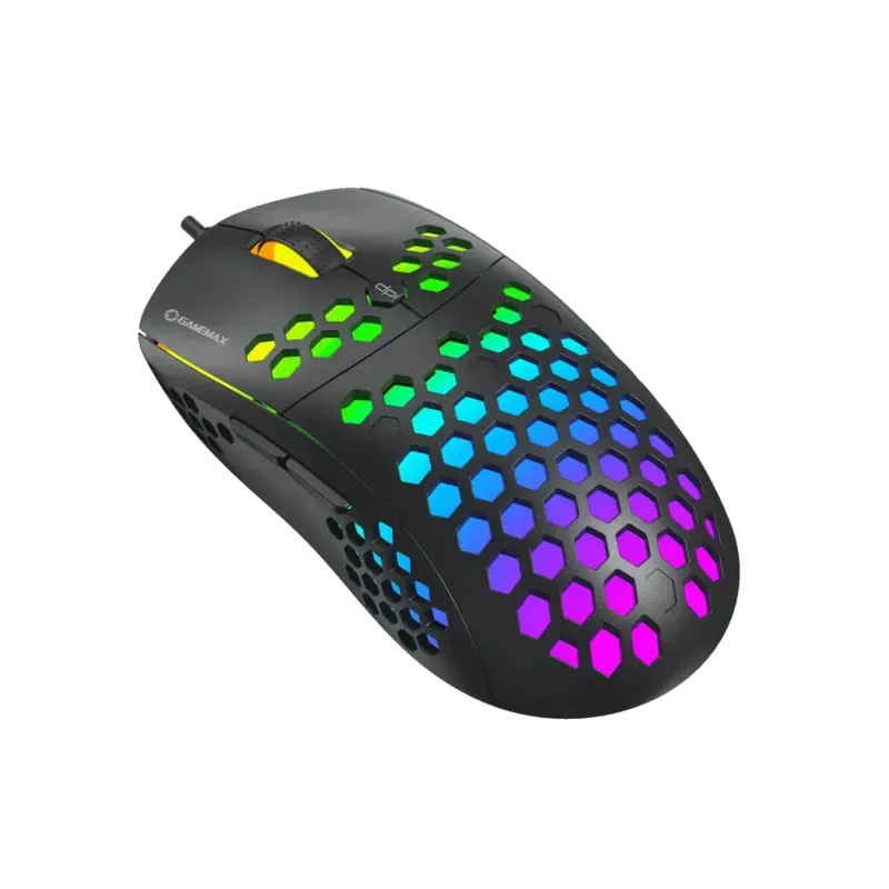 Mouse para juegos GameMax MG8 con carcasa de nido de abeja ligera, cable ultraligero Ultraweave, sensor óptico de 6400 DPI