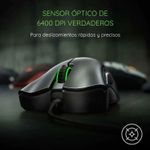 Cuenta con cinco botones programables que permiten personalizar funciones, accesos directos o macros según las necesidades del usuario. Sus switches mecánicos están diseñados para soportar hasta 10 millones de clics, asegurando una larga vida útil. La conexión por cable USB garantiza una respuesta inmediata y sin latencia, complementada por una iluminación LED verde característica de Razer.