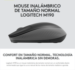 Logitech M190 es un mouse inalámbrico de tamaño normal con un confortable diseño contorneado que sigue la curva natural de las manos de tamaño mediano a grande.