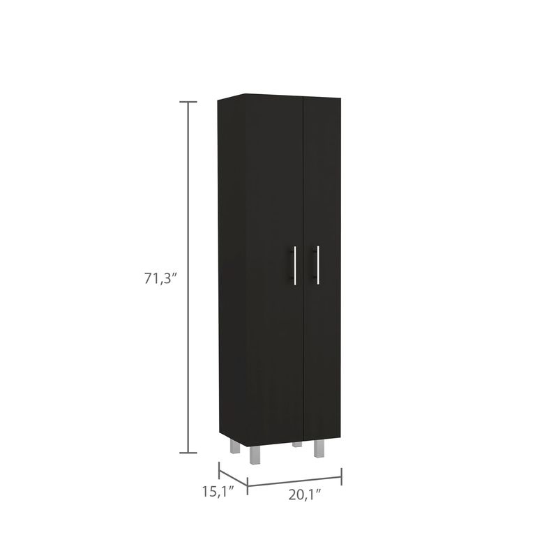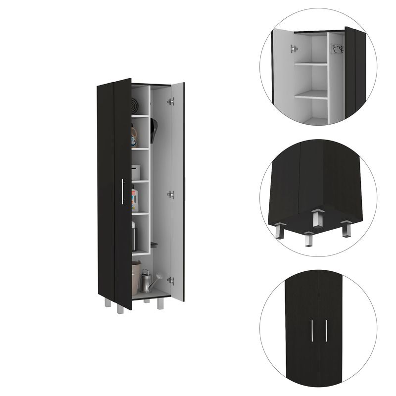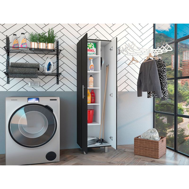 Mueble de aseo con gabinete para articulos de aseo, cinco entrepaños organizadores, incluye colgadero para escobas con medidas de: ANCHO 51,2 ALTO 181,2 PROFUNDO 38,5