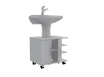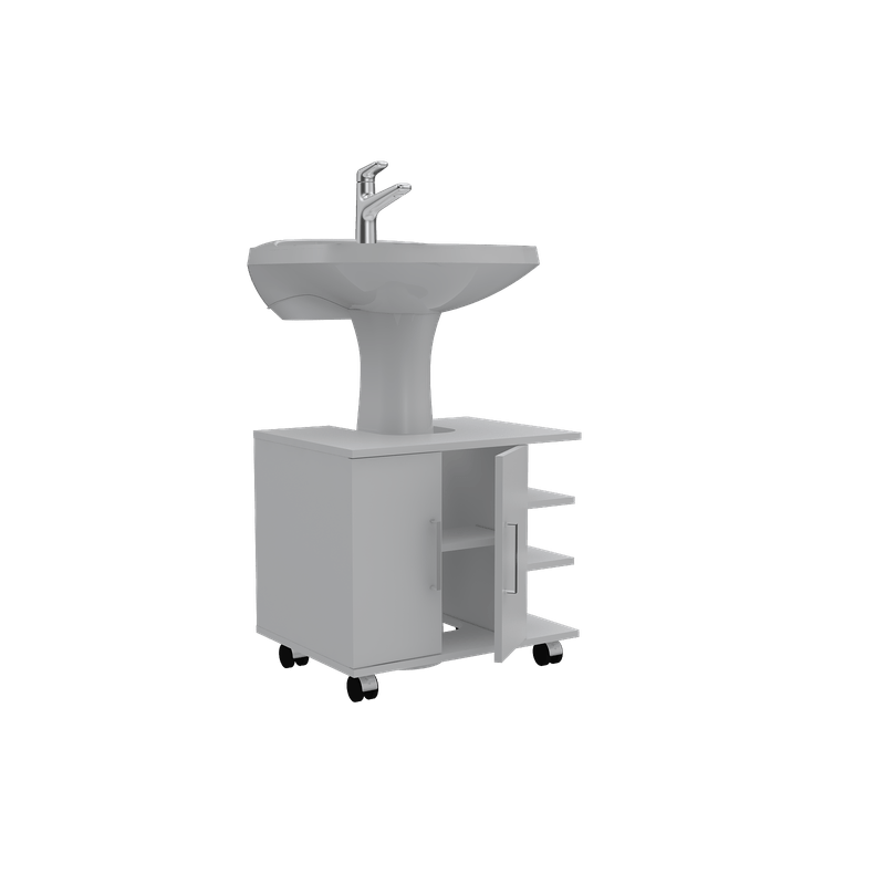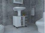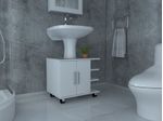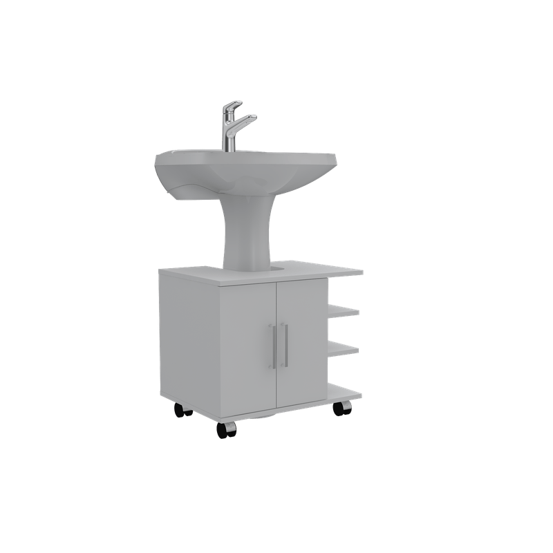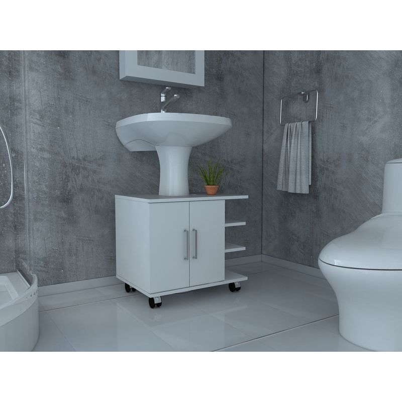 Mueble para lavamanos, dos puertas abatibles con entrepaño inferior, rodachinas plasticas con freno, entrepaños laterales, facil instalacion, contiene solo el mueble con medidas de: ANCHO 50 ALTO 55 PROFUNDO 41,4