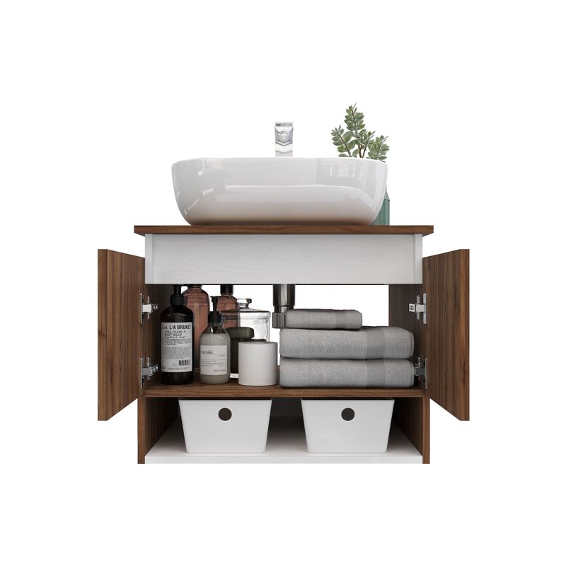 Dale estilo a tu baño y mantén el orden! Tiene un diseño tiene inspirado en el estilo Contemporáneo, el cuál brinda armonía y elegancia a tu baño. Es un mueble listo para armar, en el que puedes organizar toallas, la plancha o el secador para el cabello, papel higiénico u otros elementos de higiene. También puedes guardar tus productos de maquillaje o "skincare". Este producto es apto únicamente para lavamanos tipo vessel. No incluye lavamanos.