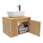Mueble elevado para lavamanos con detalle Alistonado, diseñado para aportar elegancia y funcionalidad a tu baño. Su frente Alistonado añade un estilo moderno y decorativo, mientras que su diseño elevado optimiza el espacio y facilita la limpieza, ofreciendo una solución práctica y sofisticada para la organización. No incluye lavamanos. Este mueble es apto sólo para lavamanos vessel.