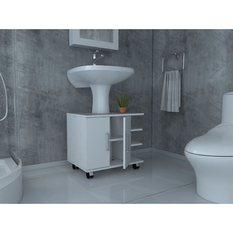Mueble Lavamanos Elemental, Blanco, con Rodachines Para Su Fácil Desplazamiento
