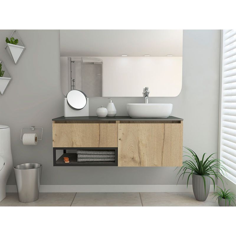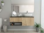 Mueble Lavamanos, de 120 cm es ideal para espacios de baño amplios, tiene un cómodo mesón y espacios de almacenamiento con una repisa inferior expuesta de fácil acceso. Encuéntralo en presentación con lavamanos.