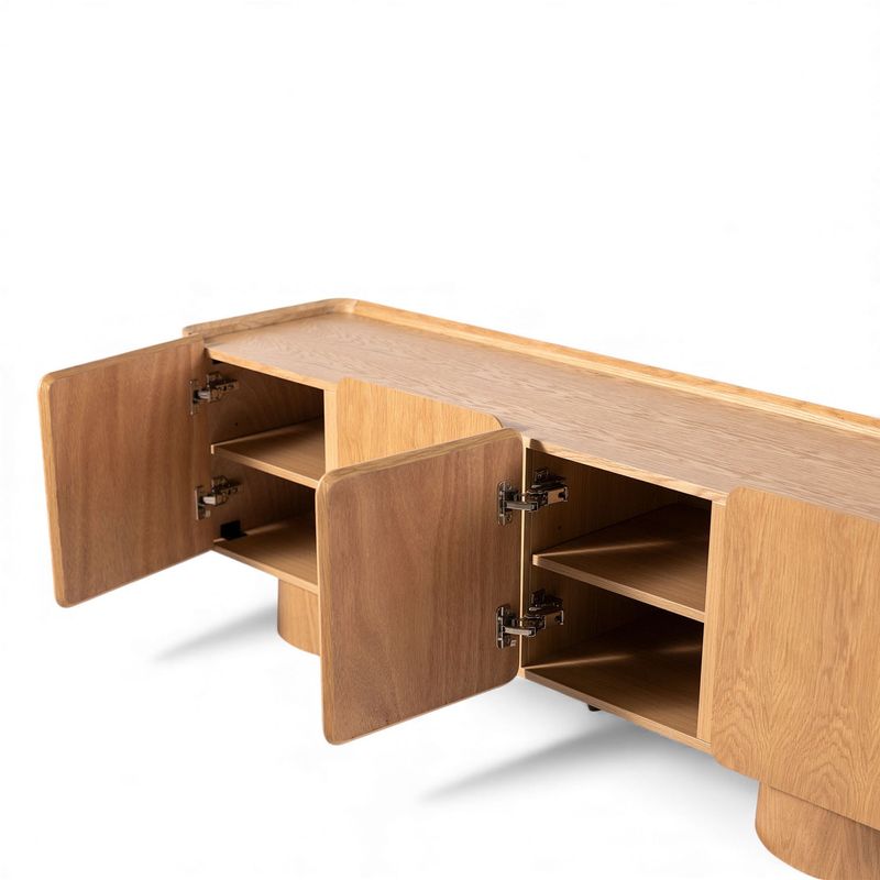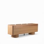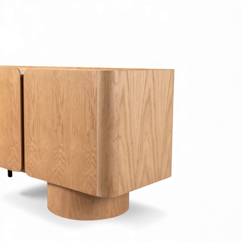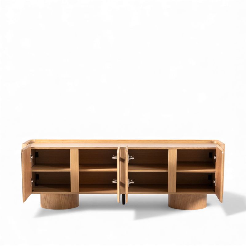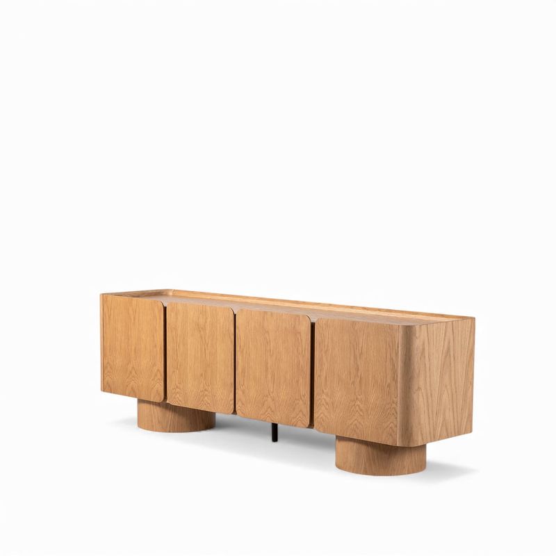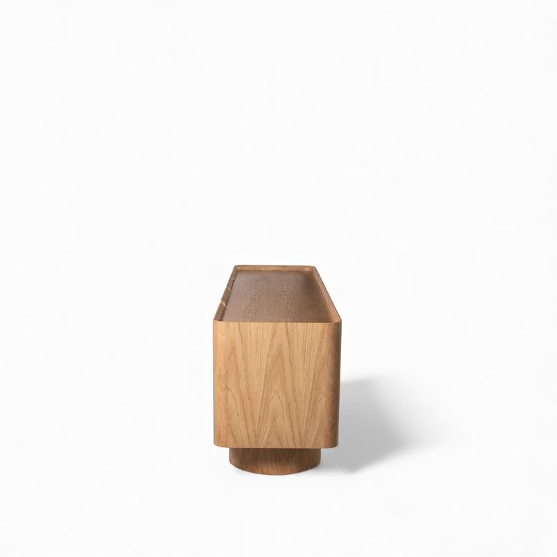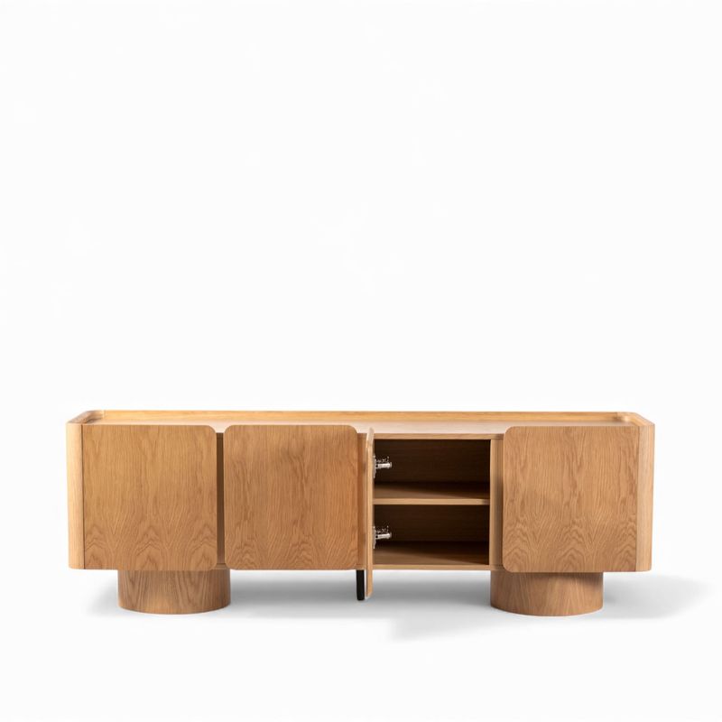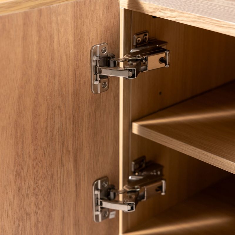 La estructura del mueble TV Calo está fabricada íntegramente con madera MDF de ultra alta densidad, un material seleccionado por su uniformidad y su capacidad para soportar grandes cargas sin deformarse. Esta construcción proporciona una base antivibración que mejora la calidad de la experiencia visual. El acabado en color madera es duradero y estético, mientras que la altura de 53 cm lo sitúa a una altura de visualización cómoda. Su diseño ofrece espacios abiertos que facilitan la gestión de cables y la ventilación de los equipos (lo que es esencial para su vida útil).