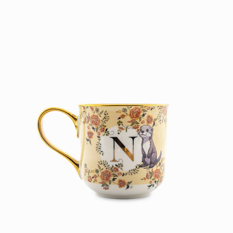Mug N personalizado de 430 ml, estilo sofisticado con diseño floral. Junto con complementos en color añade un elegante dramatismo a la mesa. Mug con diseño multicolor y un toque moderno, su tamaño generoso lo hace ideal para café, té o chocolate caliente.