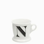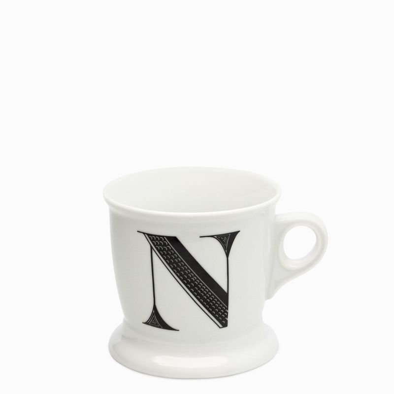 Mug en porcelana blanca de estilo vintage marcado con la letra N como un monograma del nombre de quien lo porta. Su tamaño generoso lo hace ideal para café, té o chocolate caliente, capacidad para 350 ml. Por su versatilidad se mezcla y combina fácilmente con otras vajillas.