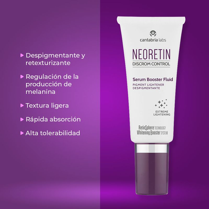 Beneficios | 1. Señor@ con este producto Neoretin Suero 30ML de la marca Cantabria Labs disminuye visiblemente manchas oscuras causadas por sol, acné o alteraciones hormonales.