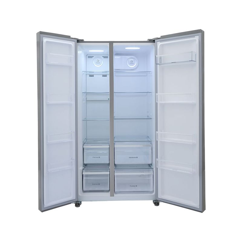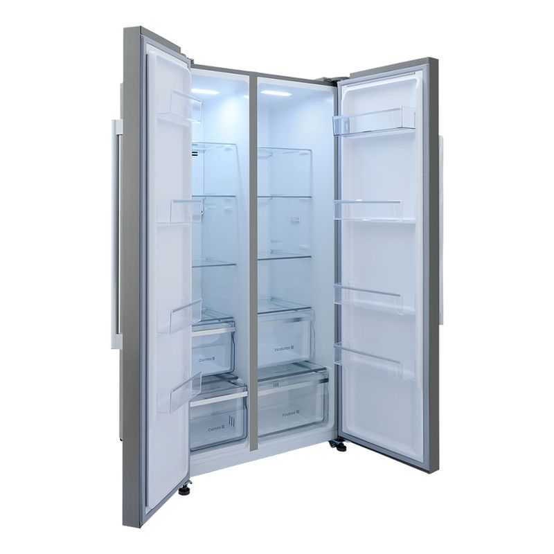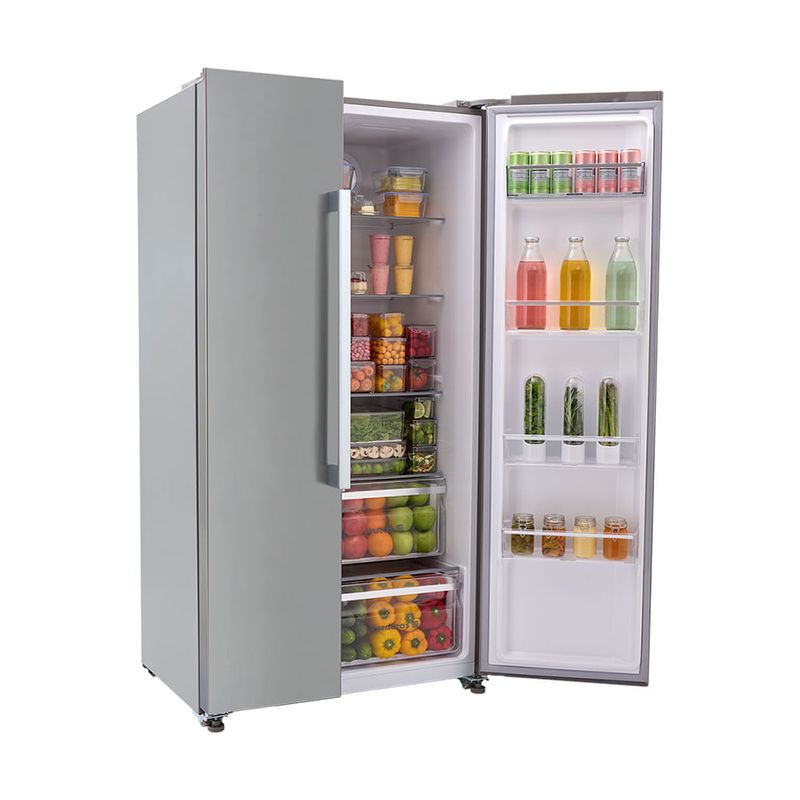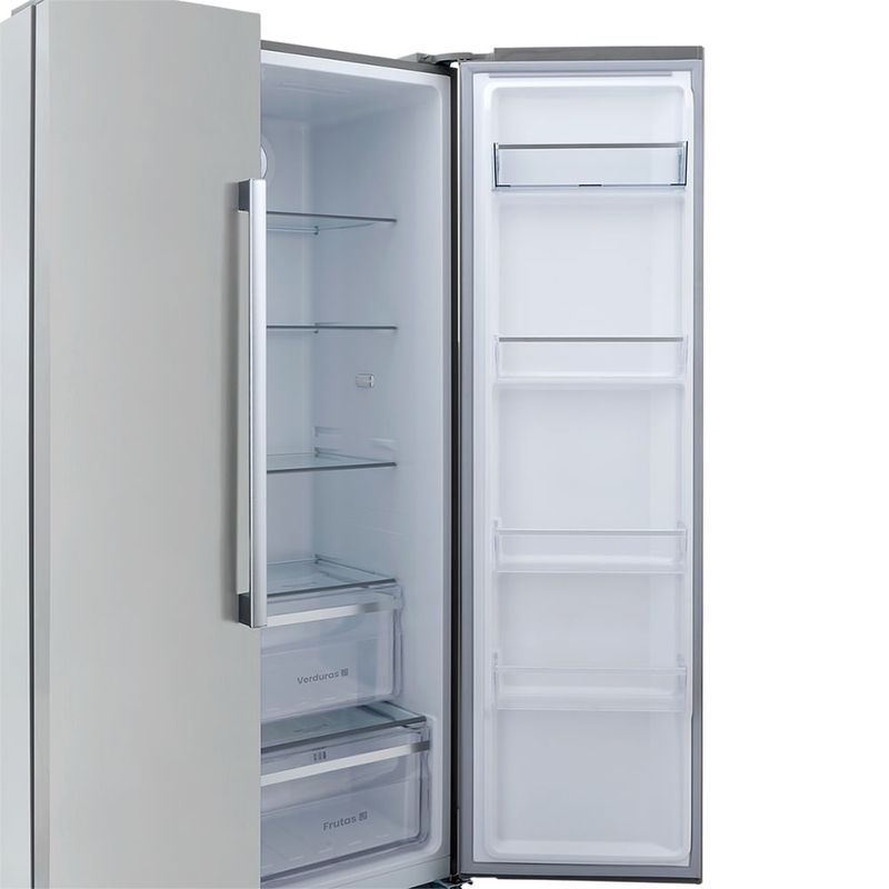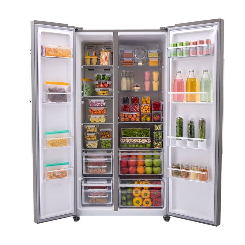 Nevecón Haceb Side by Side 563 litros en color inox. Diseñado para quienes buscan elegancia, espacio y practicidad en la cocina. Gracias a su tecnología inverter, entrega eficiencia y ahorro