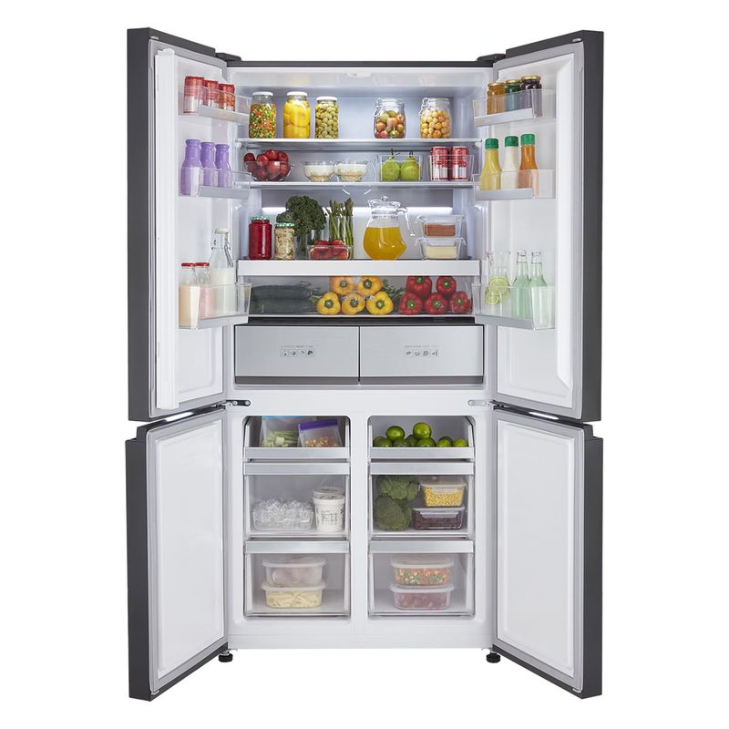 Cuenta con cuatro puertas, que no solo mejoran la organización interior, sino que también facilitan el acceso a tus alimentos y contribuyen al ahorro energético. Su compartimiento inferior derecho convertible te permite elegir entre refrigerar o congelar según lo que necesites, dándote flexibilidad para almacenar diferentes tipos de productos.