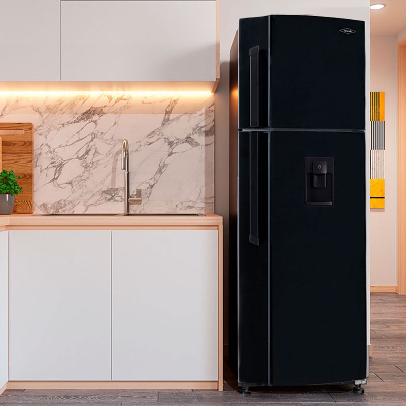 Nevera Haceb negra de 311 litros brutos. Diseñada para alargar la vida de tus alimentos gracias a su sistema de conservación Himalaya compuesto por: frío sectorizado y estable en cada zona, corrientes de frío óptimas, separador de frutas y verduras, y compartimiento extra-frío. Tendrás gran visibilidad y menos sombras (iluminación tipo LED de gran alcance), ordenar será un placer con su amplio espacio interior con distribución modular, y podrás disfrutar tus bebidas frías por más tiempo gracias a su novedoso fabricador de hielo que te entrega hielos grandes y fáciles de sacar.