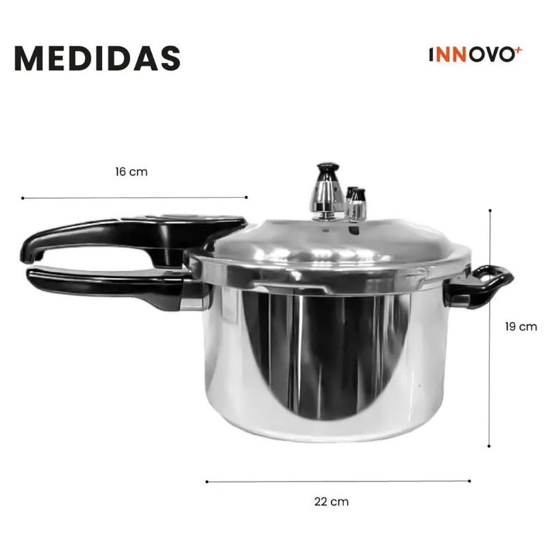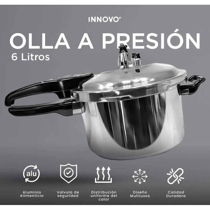 Descubre la Olla a Presión Innovo+ de 6 Litros, diseñada para quienes desean cocinar más rápido, con mayor seguridad y resultados deliciosos. Su sistema de 3 válvulas de seguridad, el aluminio alimenticio reforzado y su fondo difusor de calor la convierten en una herramienta esencial en cualquier cocina moderna.
