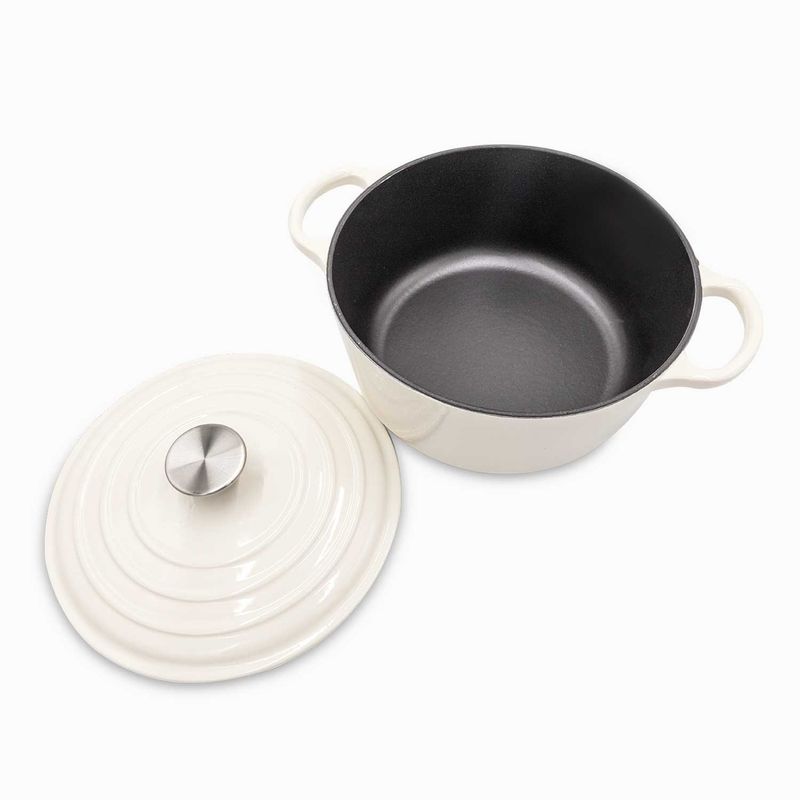 Olla tipo holandesa en hierro fundido para cocina de inducción, eléctrica, horno y asado, te permite freír y saltear, sofreír, cocinar lentamente, guisar, estofar, hervir, freír, asar y hornear. Se calienta rápidamente y de manera uniforme, sin necesidad de altas temperaturas, brindado mayor control al momento de cocinar para crear una mejor cocción, con capacidad para 4000 ml.