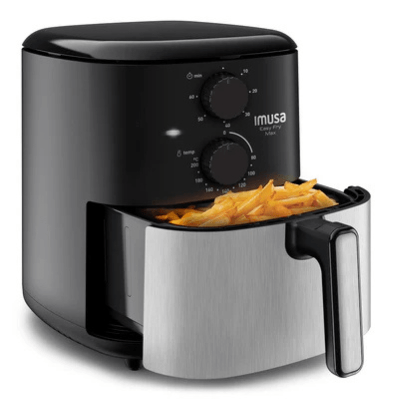Freidora de aire con capacidad de 5 litros, ideal para preparar hasta 6 porciones a la vez. Permite freír, asar, hornear y dorar de manera más saludable, con poco o nada de aceite. Incorpora temporizador de hasta 60 minutos y control de temperatura ajustable entre 80 °C y 200 °C para resultados precisos. Su canastilla cuenta con recubrimiento antiadherente para facilitar la limpieza. Tecnología extra crujiente que asegura textura dorada y crocante en cada preparación.