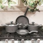 Olla en aluminio de 4800ml con tapa de vidrio, revestimiento antiadherente con efecto granito. Utensilio para cocinar tus recetas favoritas.