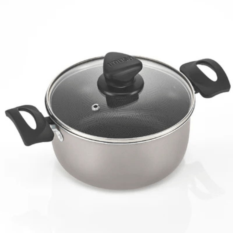 La línea Talent te ayudará ahorrar tiempo en la cocina, cuenta con Antiadherente TRIFORCE, 3 veces más durable comparado con los productos de la línea básica de IMUSA. Base difusora especial para distribuir de manera uniforme el calor. ¡Es hasta 3 veces más durable! Cuenta con Termo Señal cambia de color e indica que está listo para empezar a cocinar, así conservas mejor la textura y nutrientes de los alimentos. • Cuenta con el sello de Calidad IMUSA. • Los productos de IMUSA están fabricados con aluminio de alta pureza, certificados que cuidan y protegen la salud. • Cumple con las normas y estándares internacionales, para que sea amigable con el ambiente y cuide la salud. Solo para uso doméstico. No calientes sin alimento en el interior. La llama no se debe extender hasta las paredes del producto. No introduzcas en hornos convencionales ni microondas. Siempre usa protección para retirar el producto después de usarlo. No uses utensilios metálicos ya que pueden deteriorar el antiadherente. No almacenes alimentos en el producto ya que puede generar manchas y cambios de color. No cortes alimentos dentro del producto. Usar utensilios de silicona, madera o nylon.