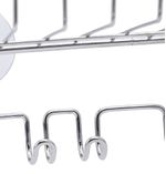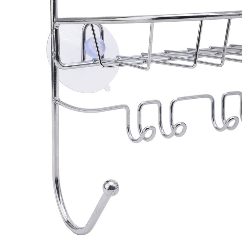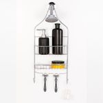 El organizador de baño ESSENZA es la solución perfecta para mantener en orden los artículos de aseo personal en baños pequeños. Su diseño compacto y su acabado cromado no solo optimizan el espacio, sino que también añaden un toque moderno y elegante al entorno. Un espacio superior ideal para envases de shampoo y un segundo nivel para cremas, lociones, jabones y más. 2 prácticos ganchos para colgar esponjas o toallitas de baño. Soporte integrado: Espacios dedicados para máquinas de afeitar. Fabricado en alambre cromado resistente a la humedad, ideal para zonas húmedas como la ducha. No requiere herramientas ni perforaciones, simplemente se cuelga en la ducha para mayor comodidad. Su acabado cromado le aporta un toque moderno y sofisticado a cualquier baño. Color: Cromado brillante. Hecho en: China.