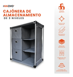 Con un elegante color gris moderno, se adapta a cualquier ambiente, desde dormitorios hasta salas o clósets. Sus tres amplios cajones ofrecen el espacio ideal para organizar ropa, accesorios, ropa interior, juguetes o cualquier otro objeto que necesites tener a mano pero fuera de la vista.