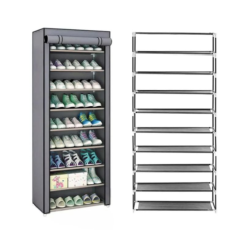 Zapatero organizador de 9 niveles, ideal para tener en casas o departamentos con poco espacio. De estructura estable, no se mueve ni raya el piso. Fabricada con tubos de material resistente y de gran calidad. Sencillo de armar y almacenar.