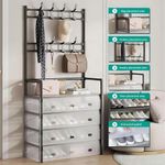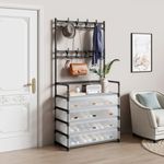 • Un perchero perfecto y un banco para guardar zapatos, le permiten colgar su ropa, bolsos, paraguas y guardar sus zapatos, cajas de almacenamiento, bolsos en un espacio limitado.