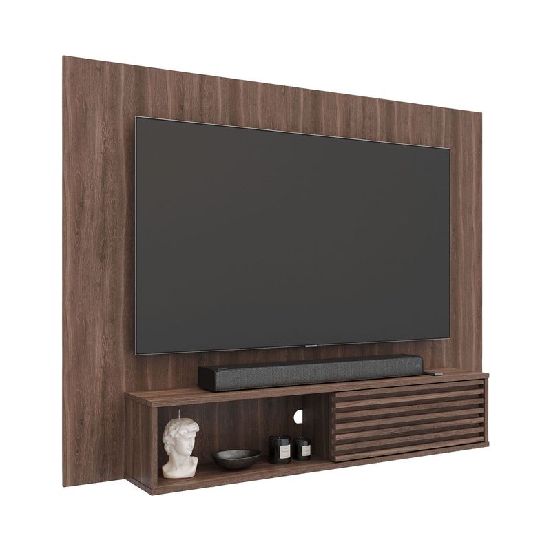Panel de TV con puerta corrediza y detalle Alistonado, ideal para realzar tu sala con un diseño moderno y elegante. Su acabado Alistonado aporta un toque decorativo sofisticado, mientras que la puerta corrediza permite organizar y ocultar equipos de forma práctica, logrando un espacio limpio, ordenado y funcional.