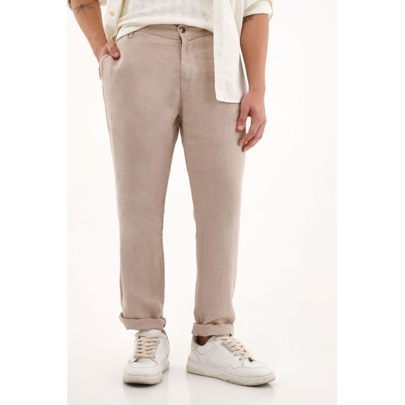 ¡Un esencial del clóset masculino! Lleva el estilo clásico a un nivel más fresco y sofisticado con este pantalón en lino.