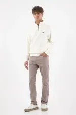 Pantalón chino para hombre de algodón gris topo fit recto con dobladillo vuelto